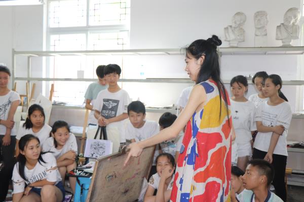 7月13日,暑期“三下乡”教学活动正式展开。经过一系列的精心准备,川美设计艺术学院学生向中山学校的同学们认真讲解创意绘画的基本知识以及如何绘制黑白画等内容。上课现场,同学们都聚精会神、专心致志地听课,中山学校的孩子们对绘画都抱有极大的热情与渴望。时光匆匆, 为期几日的“三下乡”教学活动开展得如火如荼。川美学生也与中山学校的孩子们建立了深厚的师生感情。