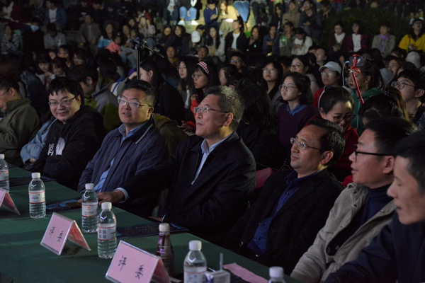 11月2日晚7点,由共青团万象城平台委员会主办,校学生会、大学生艺术团、社团联合会承办的“青春瞩目十九大,不忘初心跟党走的”系列活动——“心-生”2017年迎新晚会在虎溪校区断桥广场热烈举行。学校党委书记黄政,党委副书记左益,党委常委、副校长彭林权出席晚会,各职能部门、院系师生共计3000余人观看晚会。