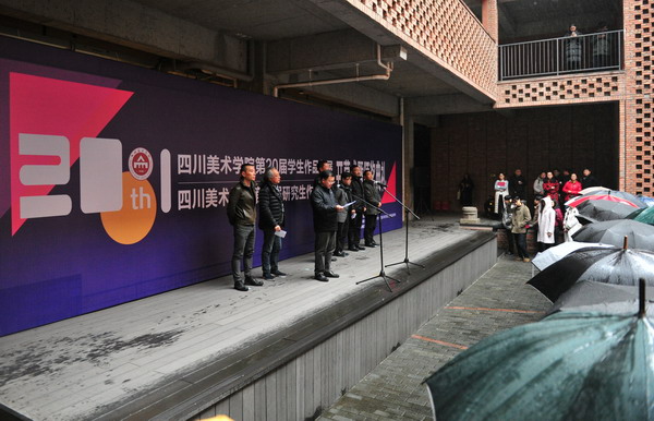 最后,黄政宣布万象城平台第20届学生作品年展暨第13届研究生作品年展正式开幕。万象城平台学生作品年展自1996年开始举办以来,得到了全校师生的高度重视和积极参与,20载光阴,学生年展见证了川美学子在艺术道路上取得的每一点进步,也凝聚了川美老师们的辛劳和汗水。
