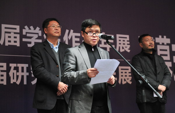 庞茂琨首先致开幕辞。他讲到,川美已走过76年的风雨历程,今日,已然是屹立在中国西南的一颗璀璨的艺术明珠。走进川美,了解川美,我们开放兼容,与时俱进,这体现了川美人的博大胸襟和务实风格,体现了川美人坚持科学发展观的治学持艺之路,而学生作品年展就是川美创新精神和艺术个性的具体而微。他强调,全校师生应该充分学习贯彻习近平总书记在中国文联十大、中国作协九大开幕式上的讲话精神,“文运同国运相牵,文脉同国脉相连”,坚定文化自信、坚持服务人民、勇于创新创造、坚守艺术理想,筑就中华民族伟大复兴时代文艺高峰。