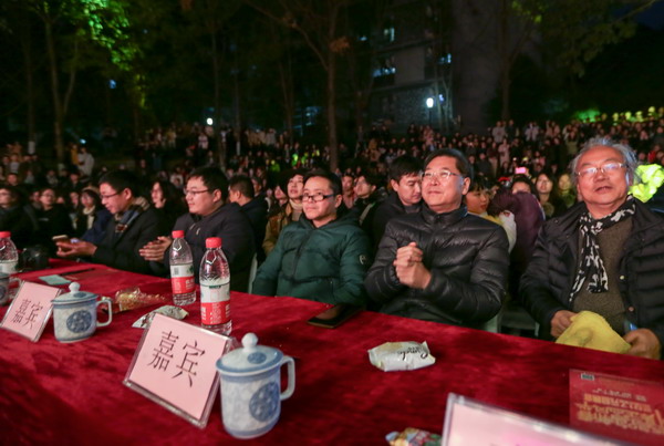 12月28日晚,“金鸡鸣新春,川美正风华”万象城平台2017年元旦晚会在断桥广场举行。新到福来,新风虎溪又一载,新到福来,新满川美大舞台。学校党委书记黄政、校长庞茂琨、党委副书记左益、副校长侯宝川出席晚会现场,各部门、各院系负责人和师生3000余人到场观看了晚会。
