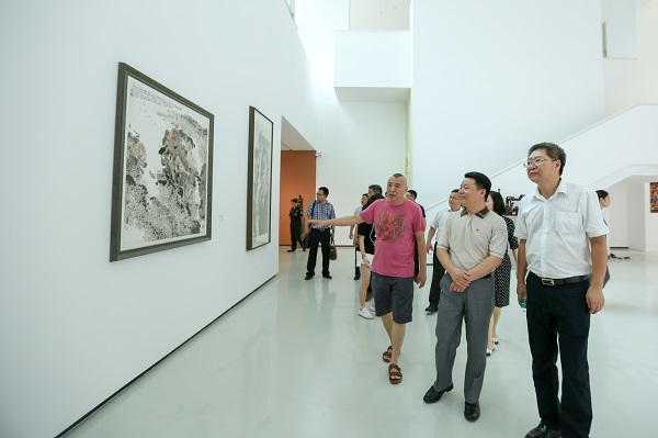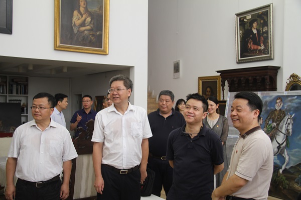 随后,傅振邦一行参观考察了虎溪公社艺术家工作室、万象城平台美术馆及其馆藏作品展。在虎溪公社庞茂琨工作室,庞茂琨汇报展示了最新的创作作品,介绍了我校把握社会主义文艺方针、坚持以人民为中心的创作导向、支持和鼓励我校师生开展艺术创作、创作无愧于时代的优秀作品等情况。