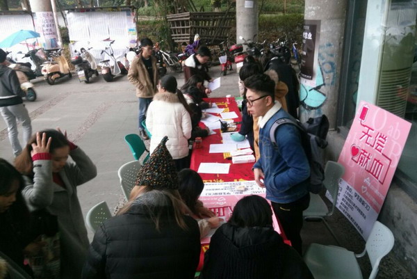 11月23日至24日,我校青年志愿者协会在校团委指导下,与重庆市血液中心发起以“汇聚热血力量,铸造生命希望”为主题的无偿献血活动,在虎溪校区学生食堂顺利开展。广大师生积极参与,献血车前排起了长龙,一股无偿献血的爱心热潮在校园内澎湃而起。