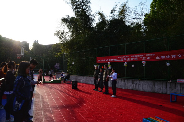 暖风习习、花香屡屡。3月21日晚6点,由校团委主办、学生社团联合会承办的“青春川美跟党走、艺绘美好新时代”系列活动——第二届学生社团“三走”主题体育文化节开幕式,在断桥广场篮球场热烈举行。校团委负责人、学生社团联合会,各学生社团参赛队员约300人参加。