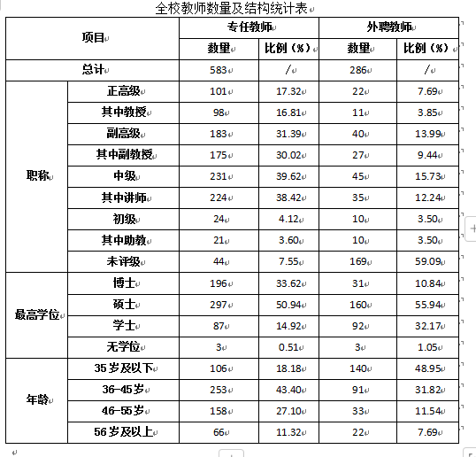 本科生占全日制在校生总数的比例、教师数量及结构
