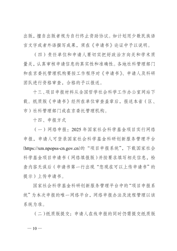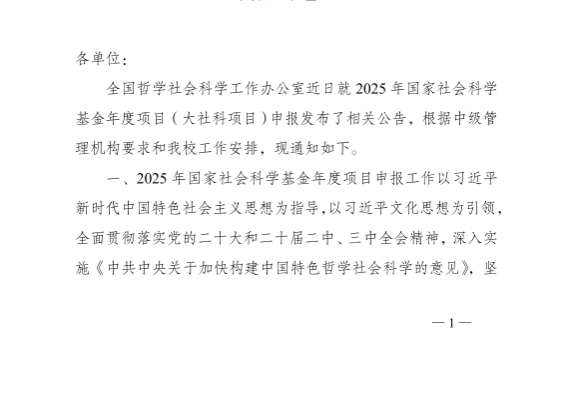关于申报2025年国家社会科学基金年度项目申报的通知