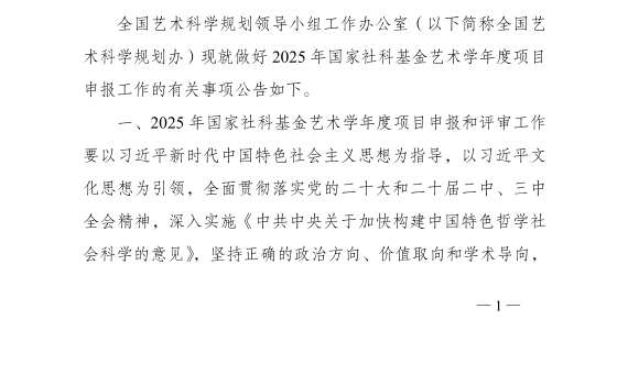 关于申报2025年国家社科基金艺术学年度项目的公告