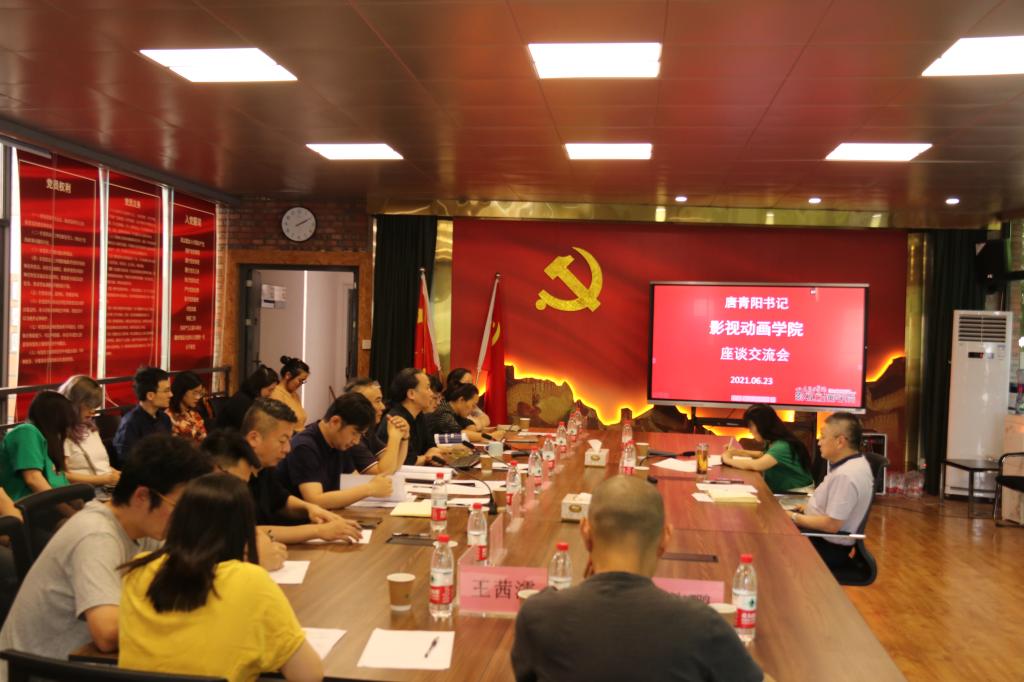6月23日下午,学校党委书记唐青阳到影视动画学院开展工作调研,影视动画学院领导班子、教研室主任、辅导员、师生代表共23人参会。