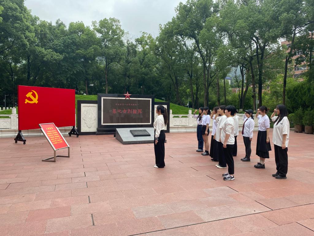 走进歌乐山下的烈士陵园,首先映入眼帘的是英雄雕塑和鲜红的各类旗帜,党员和预备党员同志在党旗下庄严肃穆为牺牲的烈士默哀,青马工程学员们在团旗下许下青春的奋斗梦想。