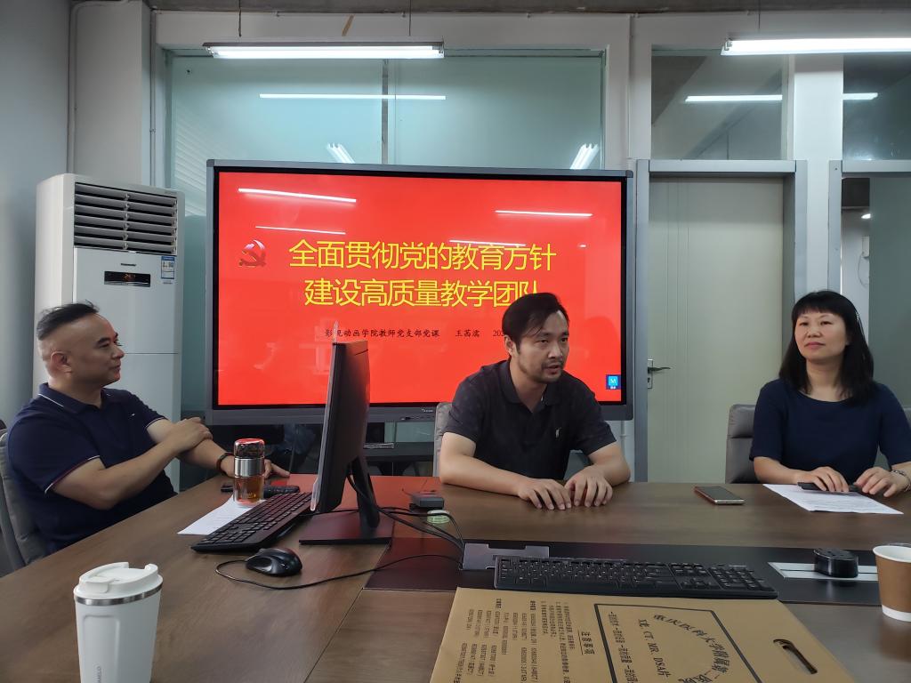 为深入贯彻落实学习习近平新时代中国特色社会主义思想主题教育,影视动画学院教师党支部于6月20日组织开展了专题党课,全体党员参加,支部书记王茜濡以“全面贯彻党的教育方针,建设高质量的教学团队”为题讲授党课。