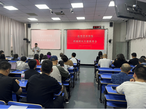 2025年5月28日下午,造型艺术学院召开5月政治理论学习暨师德师风专题教育会,会议由韦芳书记主持,全体教职工参会,会议主要围绕党纪学习、民法典学习、师德师风、本科教育教学审核评估专家注意事项和如何增强指导学生学科竞赛参赛能力等方面展开。