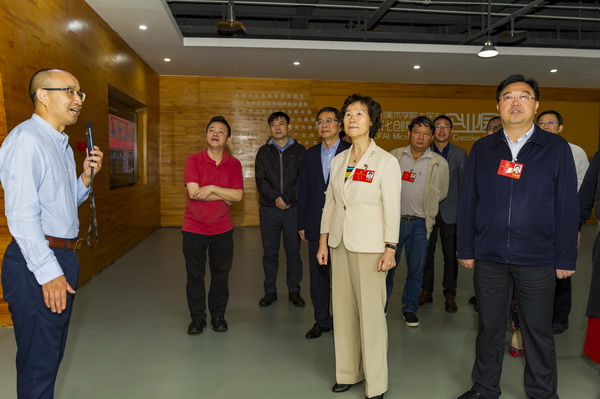 人大代表一行重点调研了四个微型企业。张轩主任走进斑斓艺术品工作室,与创业者黄丹亲切交流,对创业团队充分发挥绘画优势,通过艺术品满足人民群众对家居审美需求、提高大众审美素养表示充分肯定,并鼓励创业团队在满足大众高品质生活过程中大有可为。在LINK工作室,对创业研究生陈兴达充分发挥川美元素,打造文创延伸产品表示赞赏,希望团队成员从川美出发,打造重庆文化旅游纪念品。在荆山之玉文化创意工作室,与创业研究生荆治豪及党员指导老师曾敏亲切交流,对该师生团队依托设计优势、助力乡村精准扶贫给予高度肯定。最后走进寨上草木染团队,对贵州水族创业研究生潘宏甲发挥专业优势、创业精神,致力“脱贫路上,一个民族都不能少”,带领水族乡亲们脱贫致富给予充分肯定。